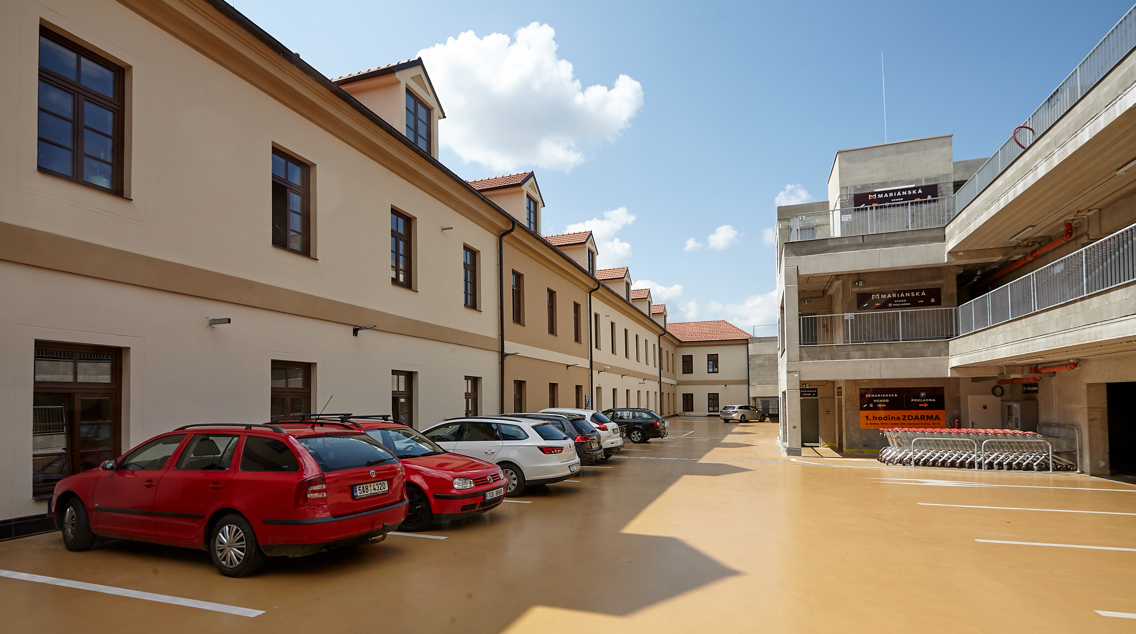 V komplexu Mariánských kasáren – nákupní centrum Mariánská – najdete parkovací stání ve třech patrech parkovacího domu pro celkem 160 vozů. Smlouvy uzavíráme od jednoho měsíce. Pro více informací nás prosím kontaktujte na emailu: info@marianska.org.